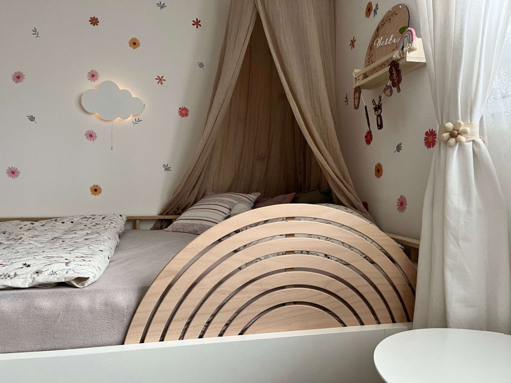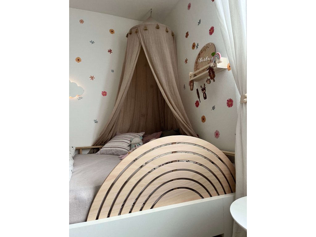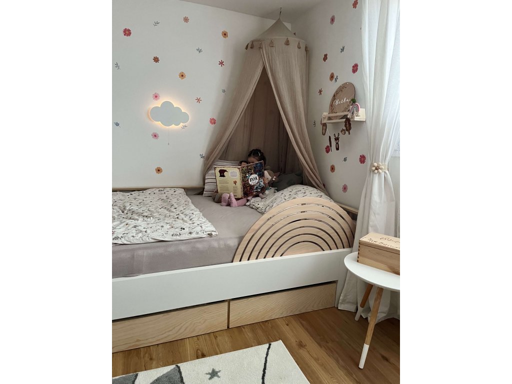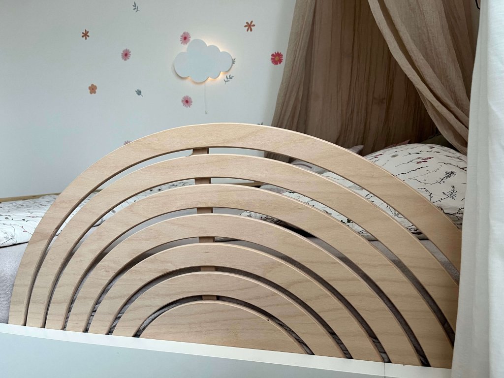 Dřevěná zábrana Duha spojuje funkčnost a hravost v jednom. Chrání vaše dítě před pádem z postele, a přitom rozzáří dětský pokoj jemným, radostným designem.