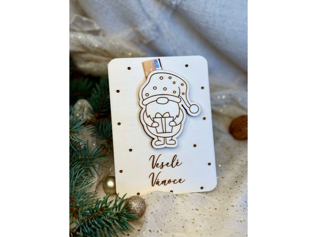 Dřevěná karta na peníze – Veselé Vánoce, Děda Mráz