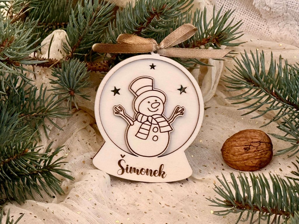 Vyrobena ve tvaru kruhu, ozdoby s jemně gravírovaným sněhulákem a možností personalizace jména dle vašeho přání.
