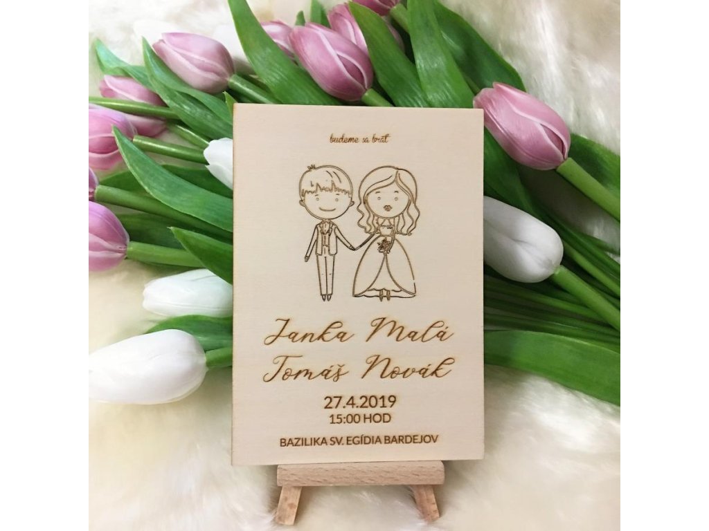 Dřevěné svatební oznámení - Nevěsta a Ženich