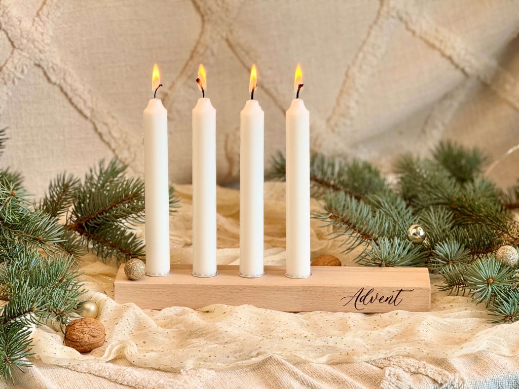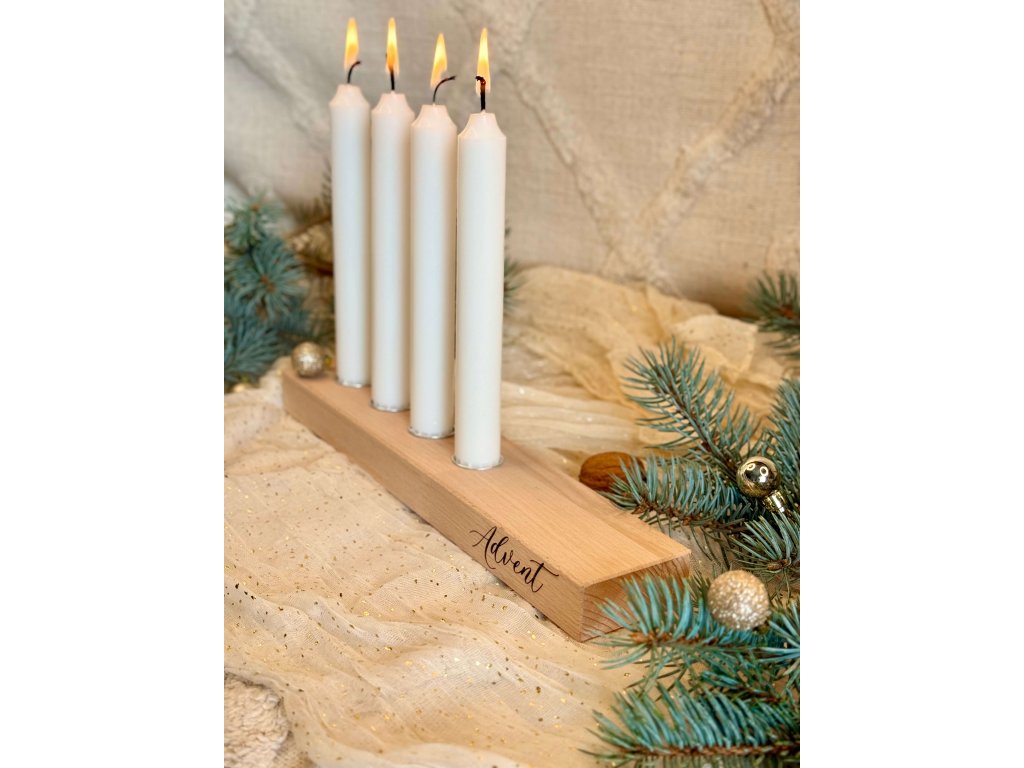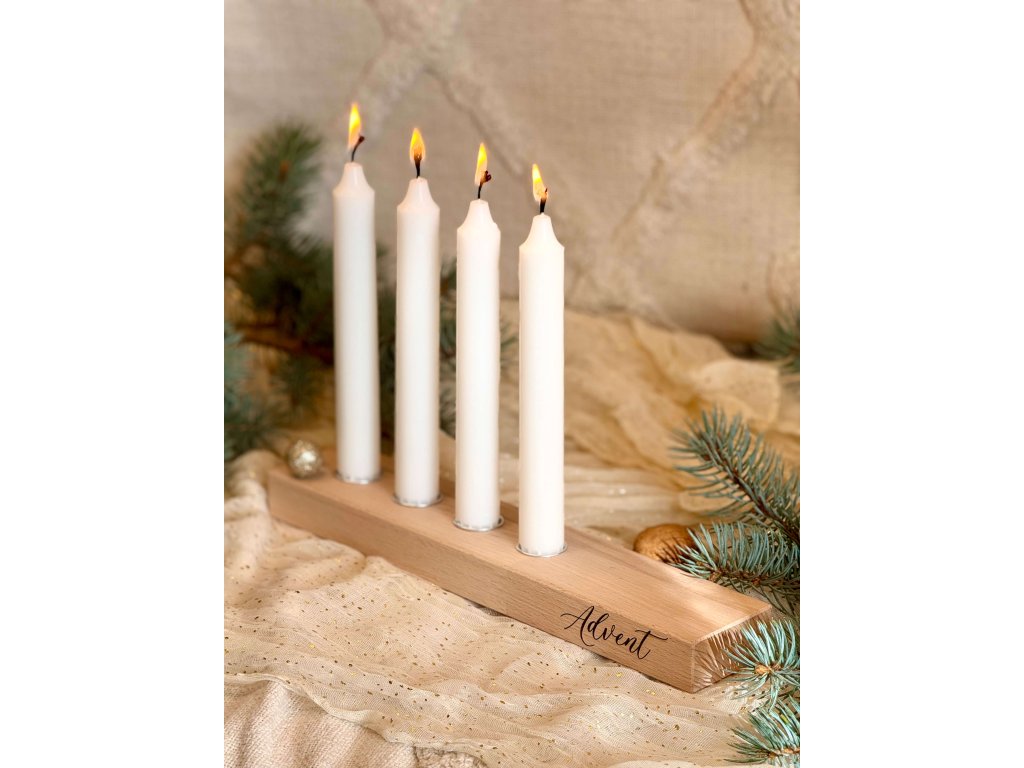 Náš dřevěný svícen ADVENT je symbolem jednoduchosti, tepla a klidu, který do vašeho domova přinese tu pravou vánoční atmosféru. Každou neděli můžete zapálit jednu svíčku a společně s rodinou si užívat pomalé chvíle adventu.