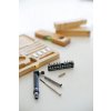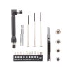 1 nástrčný šroubovák, 1 nůž na papír, 3 přesné šroubováky, 10 ks sada šroubovacích bitů v držáku, 4 ks sada nástrčných matic a 1 nástavec.
